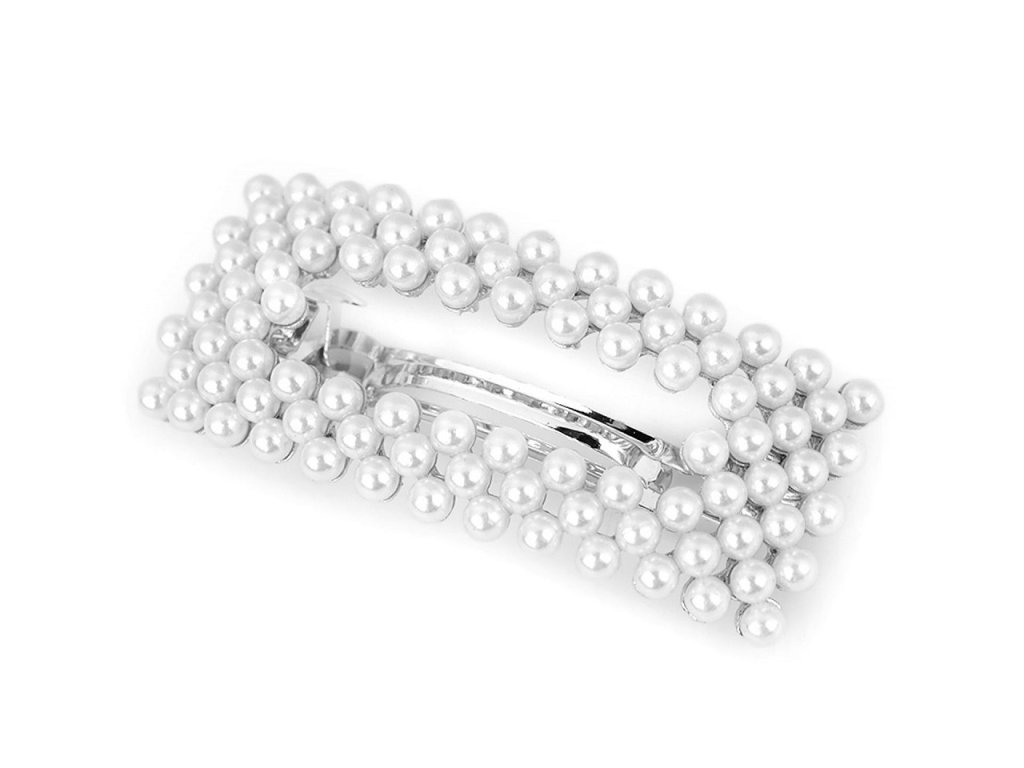 Francouzská spona ozdobená perlami elegantně ozdobí váš účes. Hodí se pro běžné dny i slavnostní příležitosti. Má velmi kvalitní celokovové provedení. Zacvakávací mechanismus je pevný.