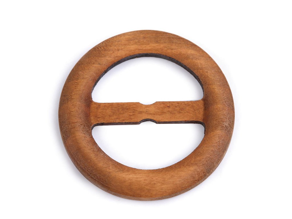 Kulatá dřevěná spona je vhodná na výrobu opasků k šatům, halenkám, tunikám apod. Zajímavě vynikne také jako ozdobný prvek tašek a kabelek, obzvlášť letních pletených či drhaných.