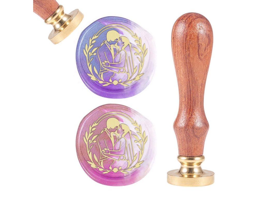 Kovové pečetidlo s dřevěnou ručkou pro práci s pečetními vosky.