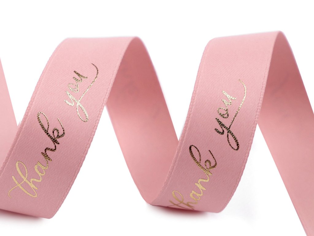Saténová stuha s metalickým potiskem thank you šíře 16 mm matná