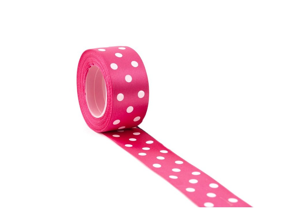 Saténová stuha s puntíky šíře 25 mm - růžová tm.