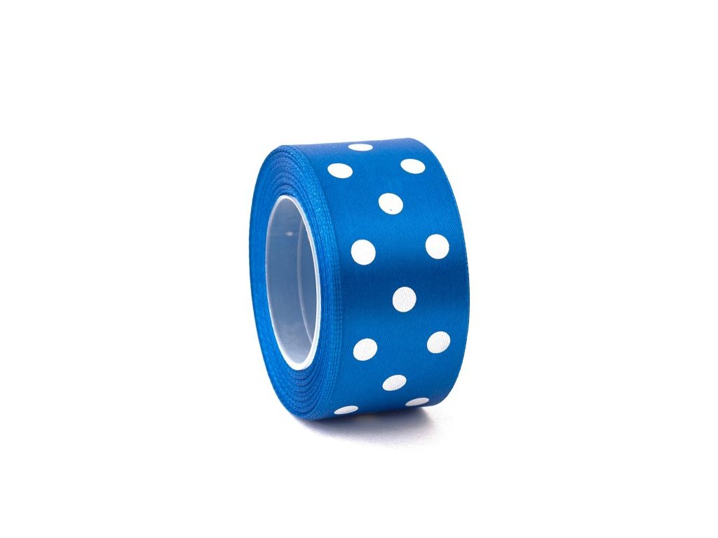 Saténová stuha s puntíky šíře 51 mm - modrá tm.