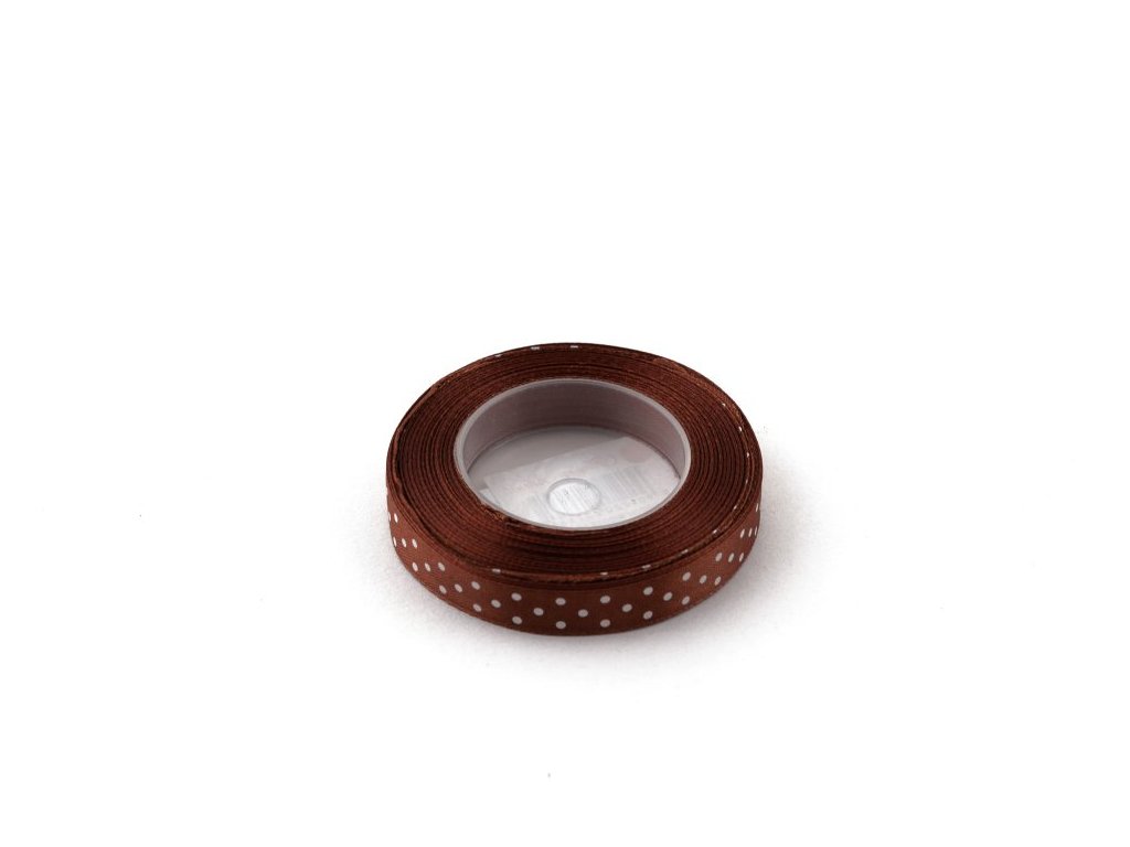 Saténová stuha s puntíky šíře 6 mm - hnědá (4m)