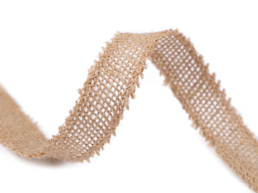 Jutová stuha je pevná, díky obšitým okrajům se netřepí.