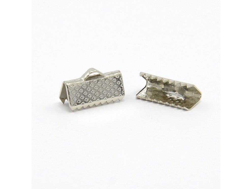 Praktická kovová zakončení na stuhy o rozměrech 7 × 13 mm a otvorem 2 mm. Díky zoubkům pevně uchytí stuhu nebo šňůrku, což je ideální pro kreativní projekty a elegantní zakončení.