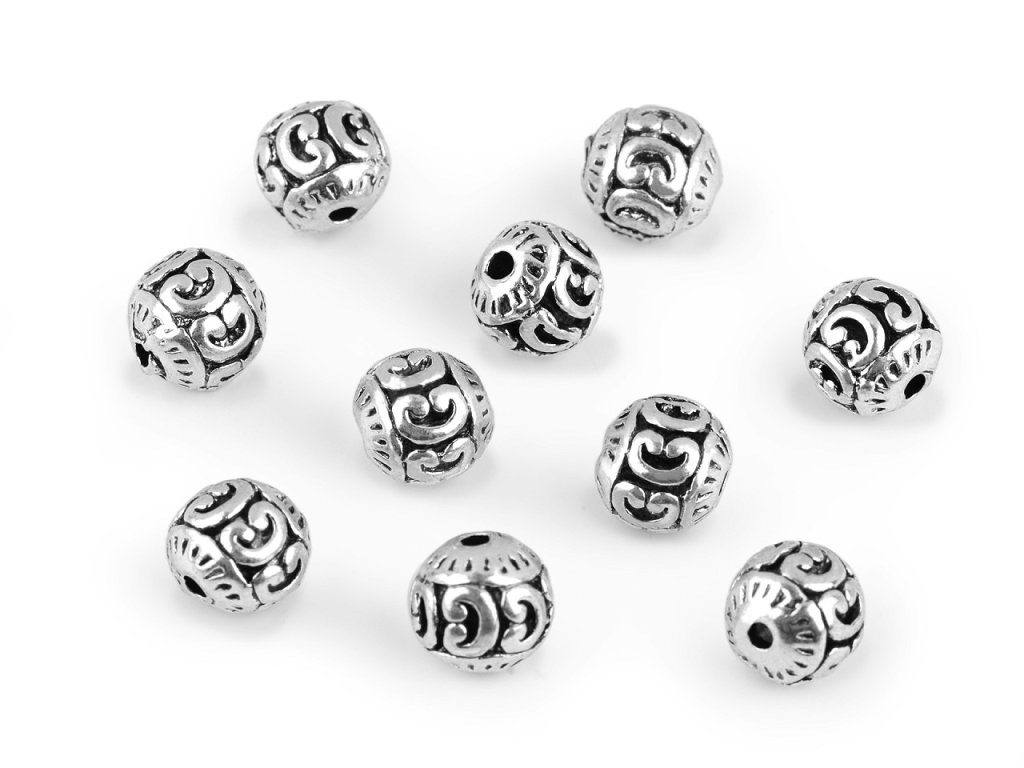 Kulatý kovový korálek s ornamenty můžete využít jako zajímavý a oživující prvek.