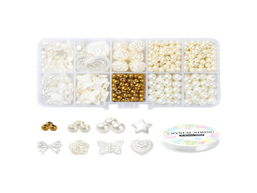 Plastové perlové korálky v mixu barev a tvarů, ideální pro výrobu šperků. Jsou skvělé pro tvorbu náramků, náhrdelníků nebo řetízků na telefon.