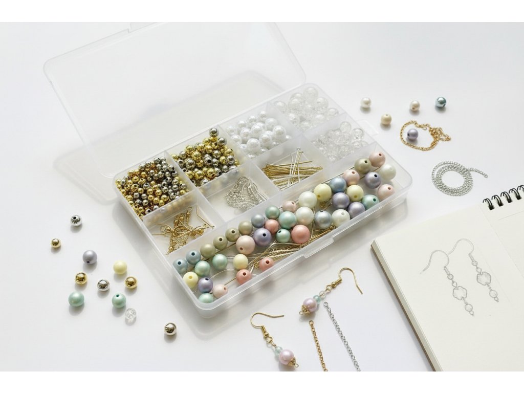 Větší sada korálků na vytvoření vlastních, jedinečných šperků. Záleží jen na Vaší fantazii.