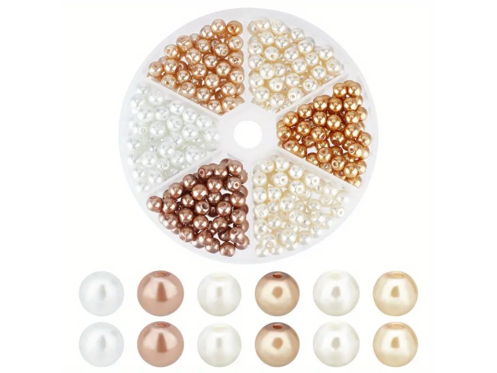 Tato sada obsahuje skleněné voskové perly v šesti různých krémových odstínech. Perly jsou ideální pro výrobu šperků a další kreativní DIY projekty, jako jsou náhrdelníky, náramky nebo dekorace.