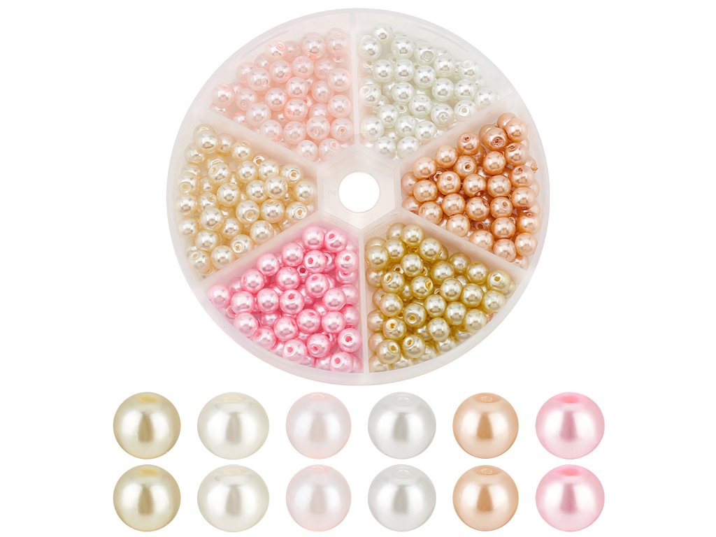 Tato sada obsahuje skleněné voskové perly v šesti různých barevných odstínech s perleťovým efektem. Perly jsou ideální pro výrobu šperků a další kreativní DIY projekty, jako jsou náhrdelníky, náramky nebo dekorace.
