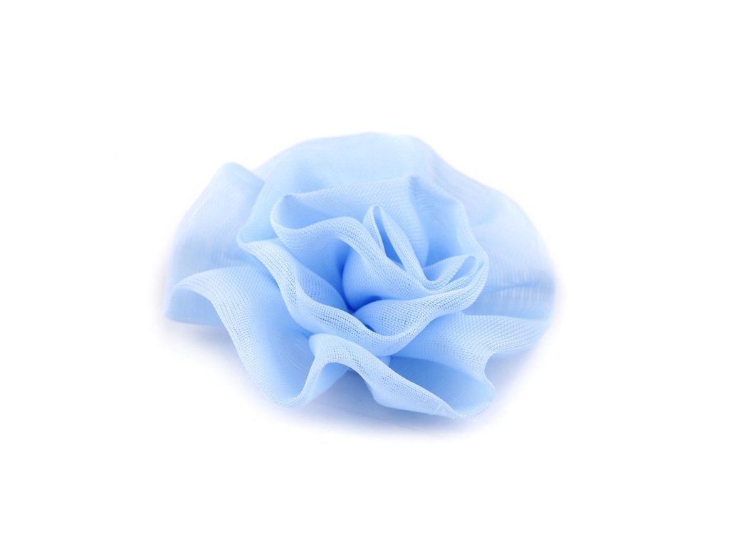 Romantický textilní květ je bohatě nařasený, působí nadýchaným vzhledem. Ve spodní části má pogumovanou plošku, dá se pohodlně kamkoliv připevnit. Můžete jej našít i nalepit.