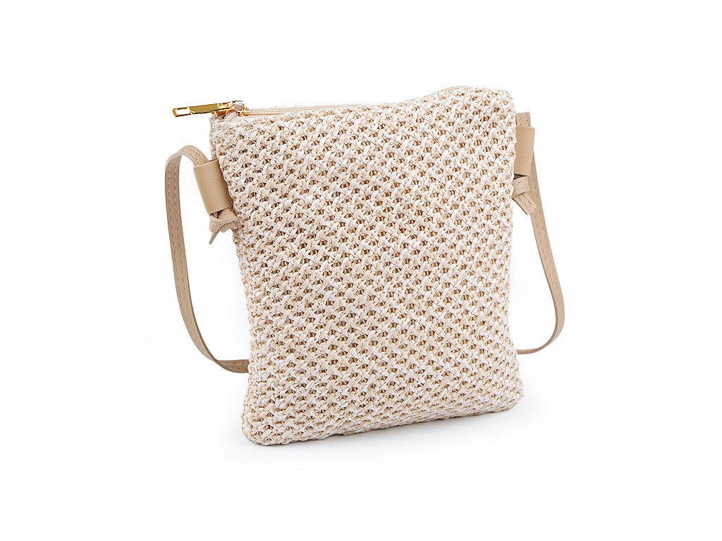 Malá kabelka je praktickým módním doplňkem v boho stylu. Její potah zajímavě imituje jutu s macrame strukturou.