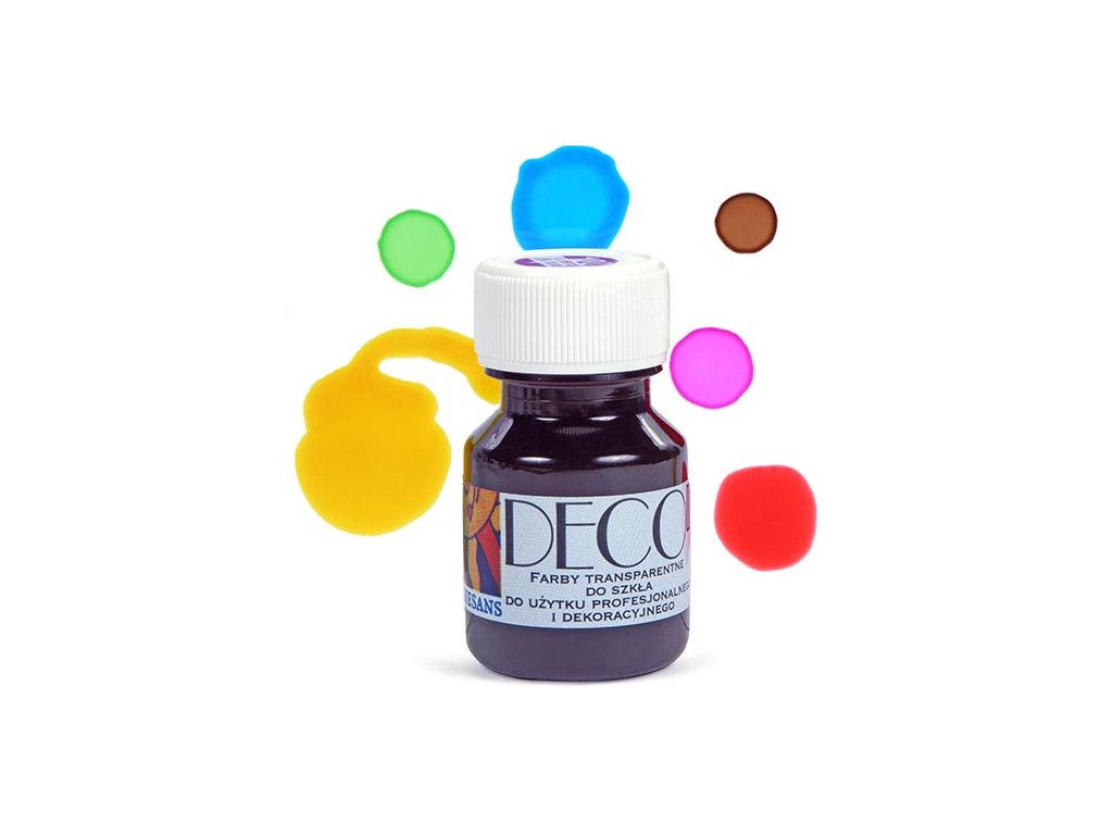 Barvy Deco od značky Renesans pro malbu na sklo a zrcadla. Vysoká koncentrace pigmentu a ideální řídkost zaručuje jednoduchou aplikaci a výrazné odstíny i po zaschnutí. Barvy jsou dodávány v praktických lahvičkách o objemu 30ml, všechny lze mezi sebou mísit.