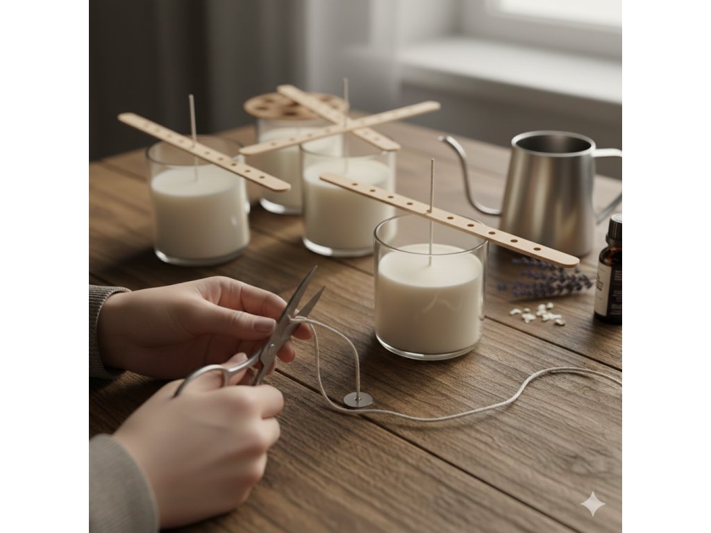 Práce s knotem je jednoduchá a efektivní. Stačí si odměřit potřebnou délku, uchytit knot na dno formy (např. pomocí plíšku nebo kapky vosku) a poté jej pomalu zalévat nahřátým voskem. Pro dokonalý výsledek doporučujeme knot během tuhnutí zajistit naším dřevěným držákem.