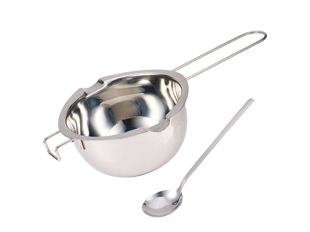 Nerezový hrnec na rozpouštění vosku při výrobě svíček se lžící (7x28cm)