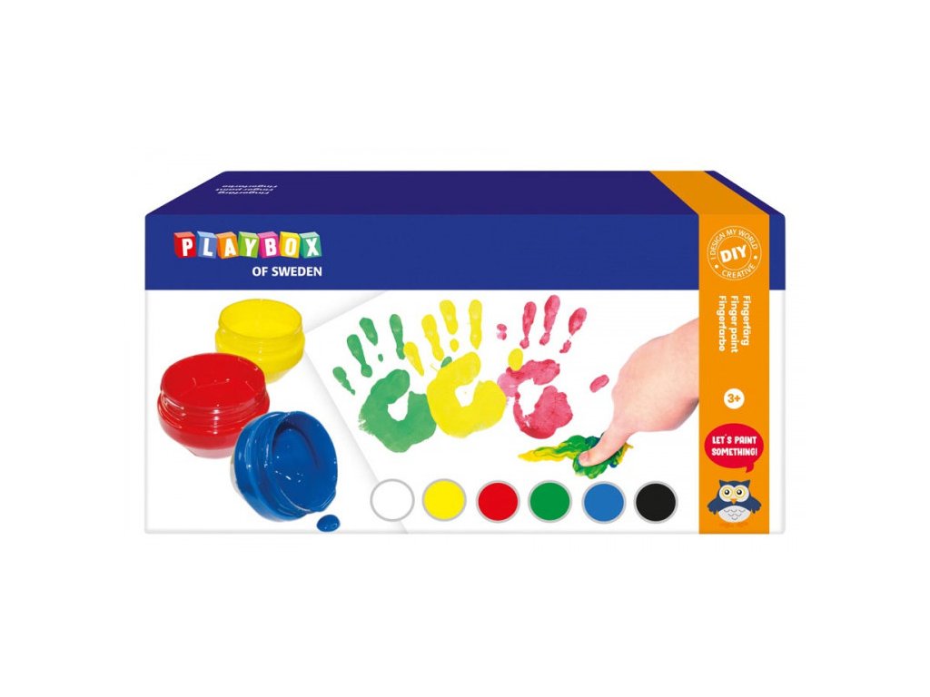 Prstové barvy obsahují 6 barev ( bílá, žlutá, červená, zelená, modrá, černá)