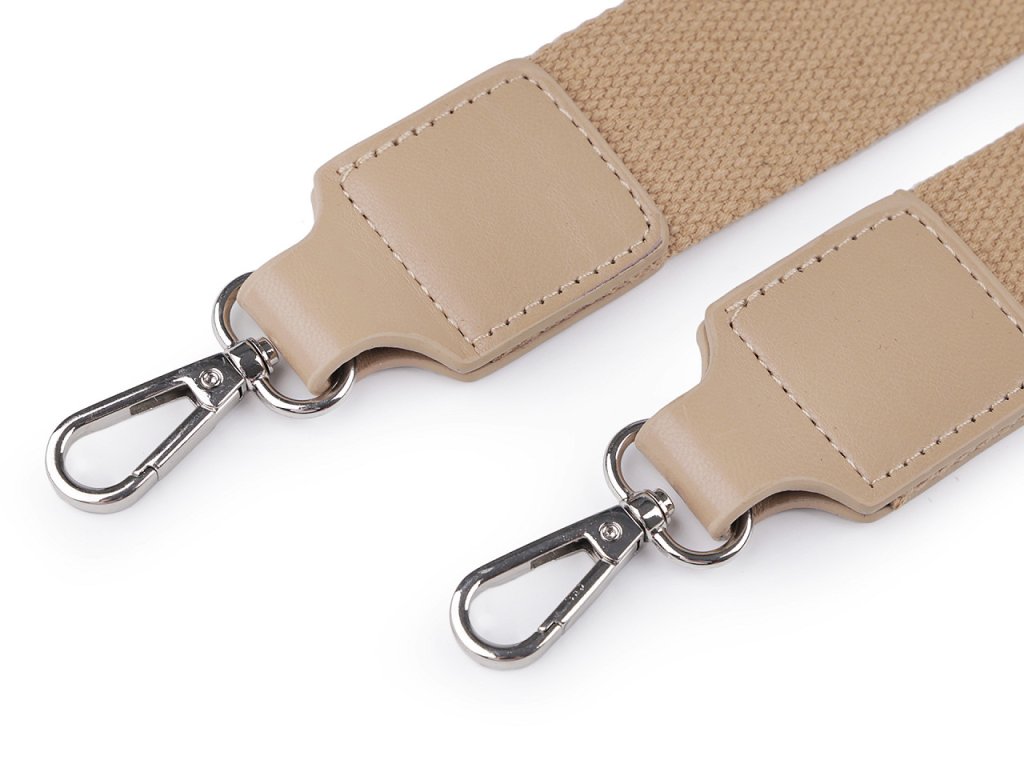 Textilní popruh na tašku má z každé strany karabinu, takže ho ke kabelce lehce připnete. Nemá nastavitelnou délku.