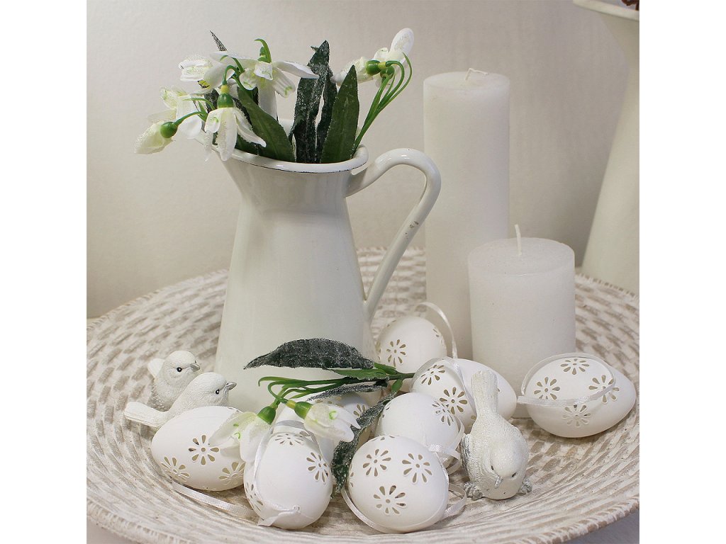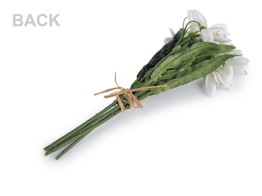 Svazek umělých sněženek vynikne ve váze, ale také v květinových vazbách, věncích a jarních aranžmá. Zajímavý efekt sněženkám dodávají drobné transparentní kuličky, které působí jako námraza. Uvnitř stonků je drát, který se dá tvarovat.