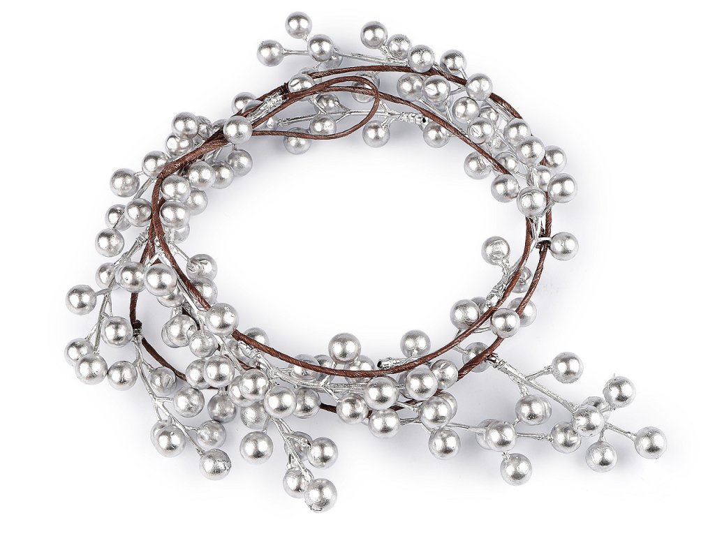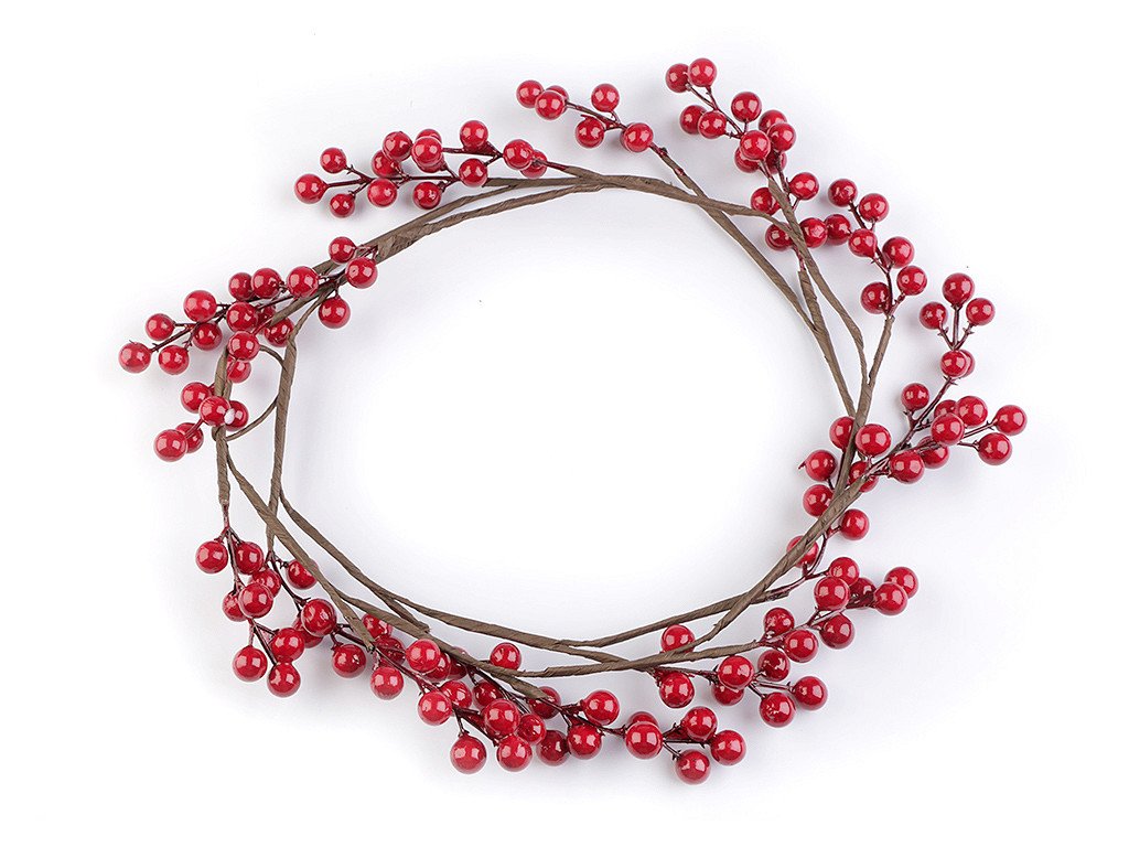 Dekorační jeřabiny z polystyrenu jsou připevněny na plastovou větvičku. Jednotlivé trsy jsou upevněny na drát, který je 150 cm dlouhý. Větvička se dá lehce tvarovat a upravit do pozice, jakou budete chtít.