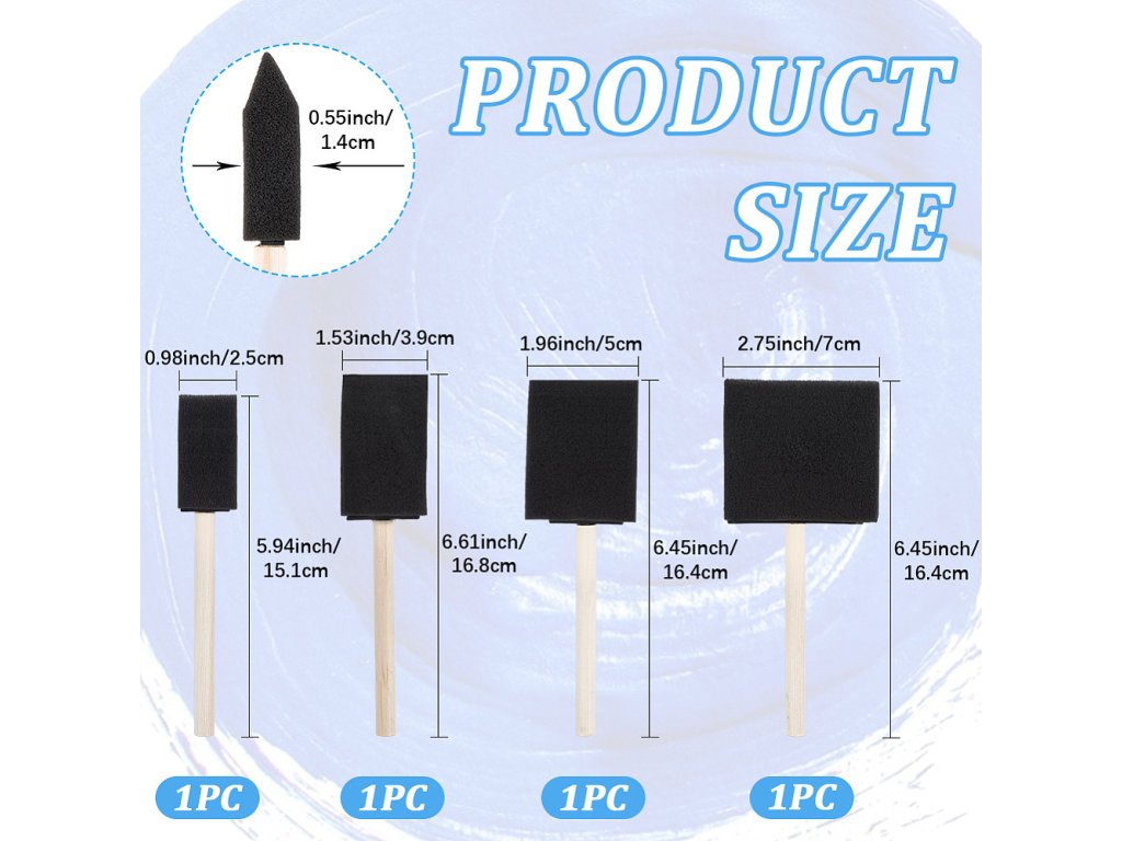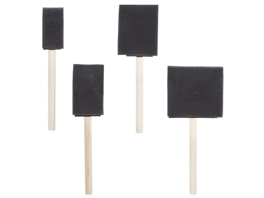 Sada čtyř molitanových štětců černé barvy s pevnou dřevěnou rukojetí. Molitanové štětce se používají obvykle na malbu velkých ploch jedním odstínem, kde není požadované stínování a tónování barev. Můžete použít také jako štětce tupovací.