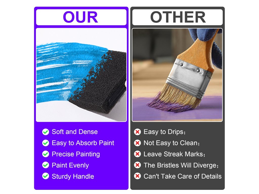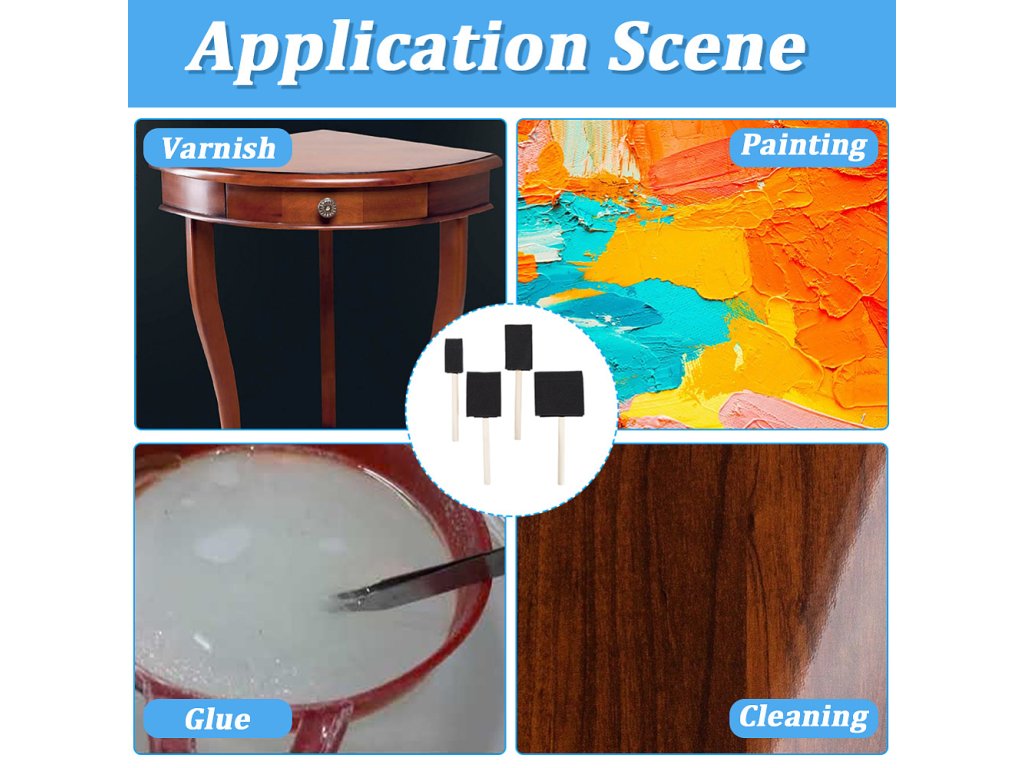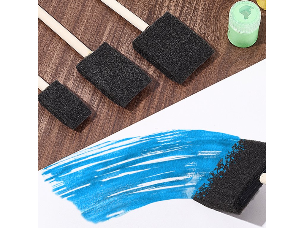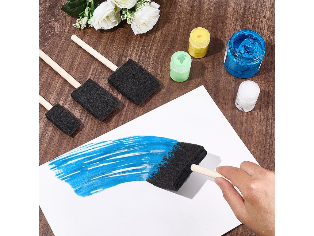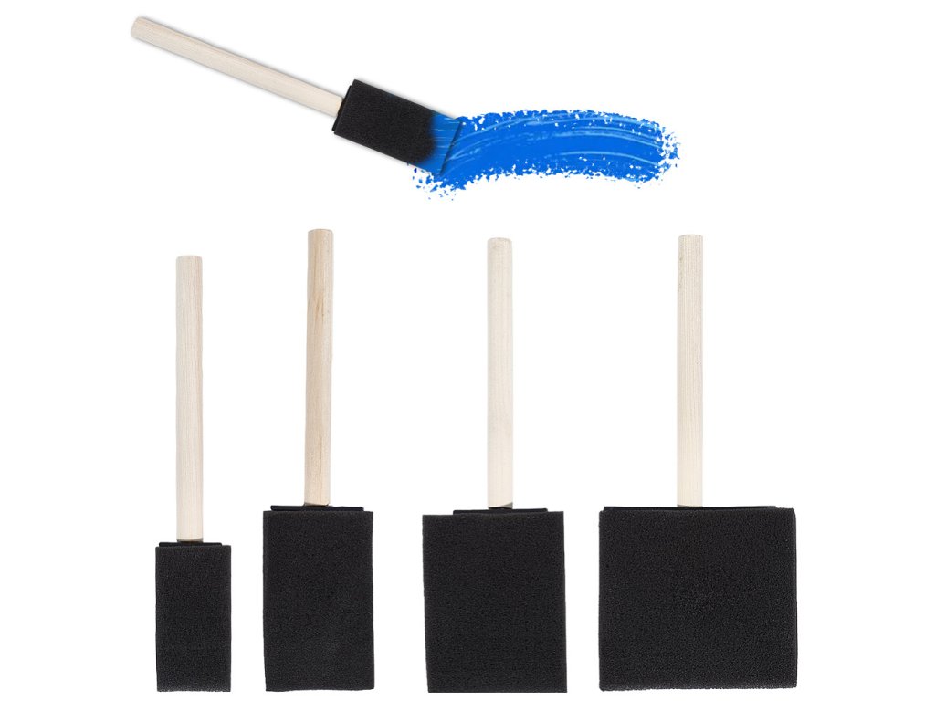 Sada čtyř molitanových štětců černé barvy s pevnou dřevěnou rukojetí. Molitanové štětce se používají obvykle na malbu velkých ploch jedním odstínem, kde není požadované stínování a tónování barev. Při nanesení jednoho odstínu jsou ideální pro rychlé a jednoduché použití bez viditelných tahů štětin. Můžete použít také jako štětce tupovací.