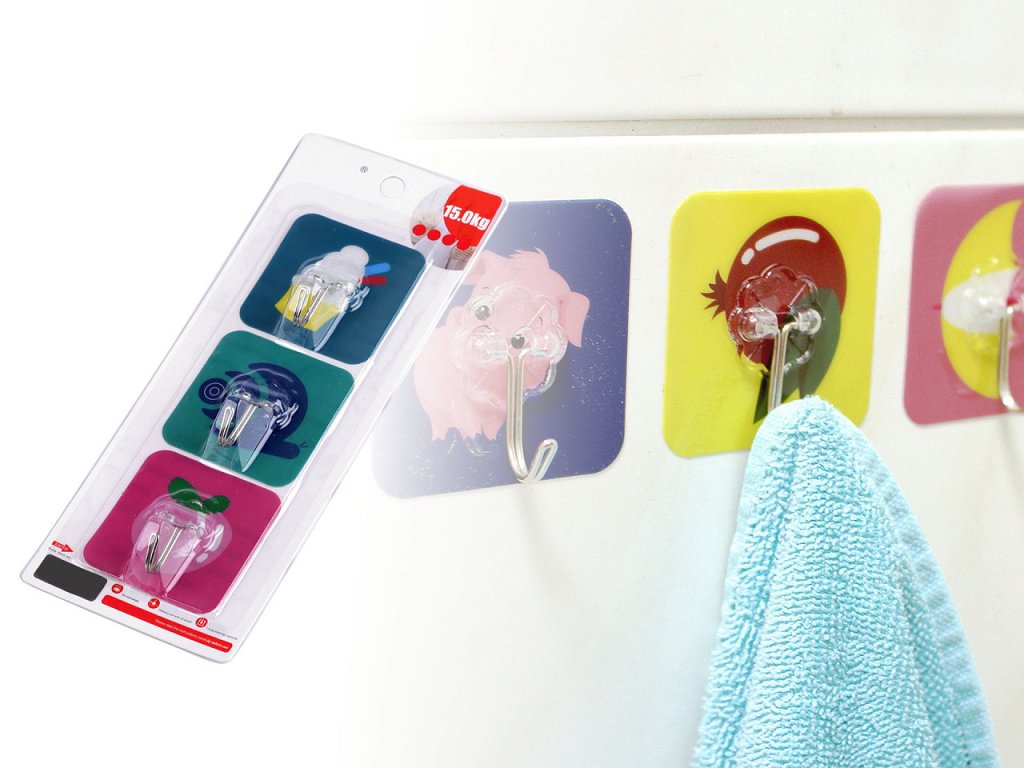 Samolepicí háček kovový s obrázkem sada 3 ks