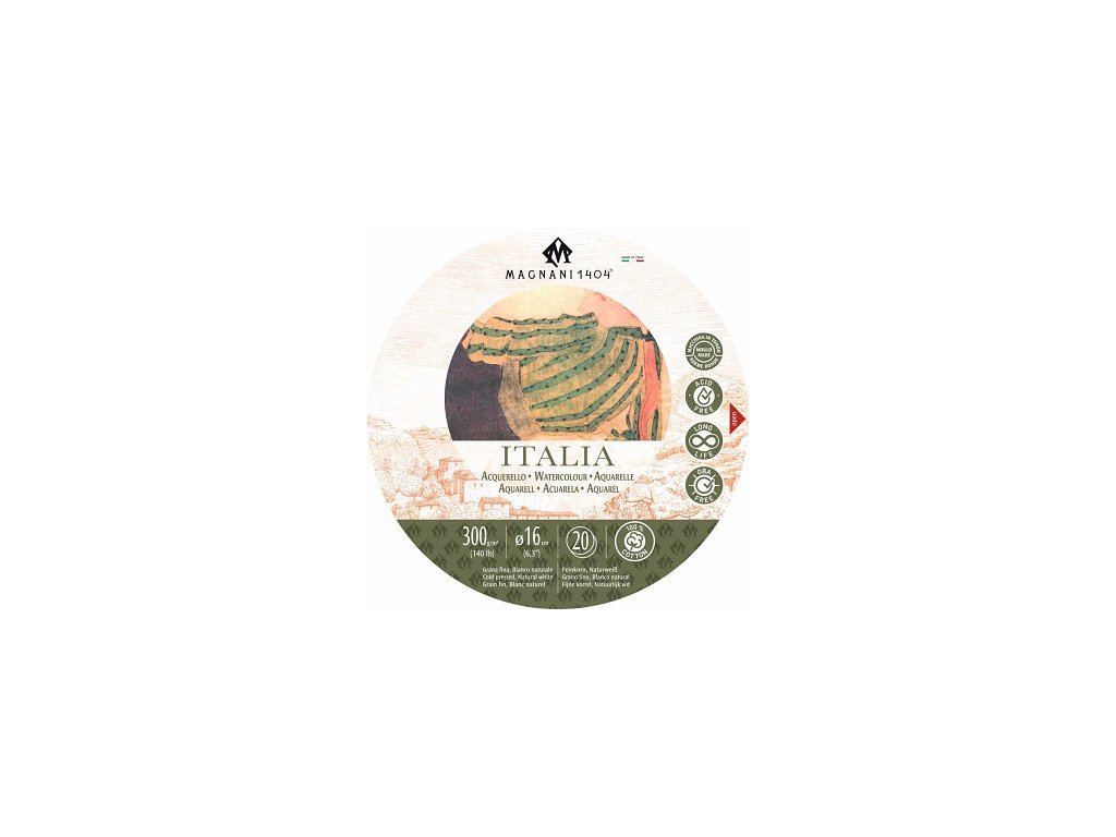 Kulatý akvarelový blok Magnani Italia 16cm 300g 100% bavlna