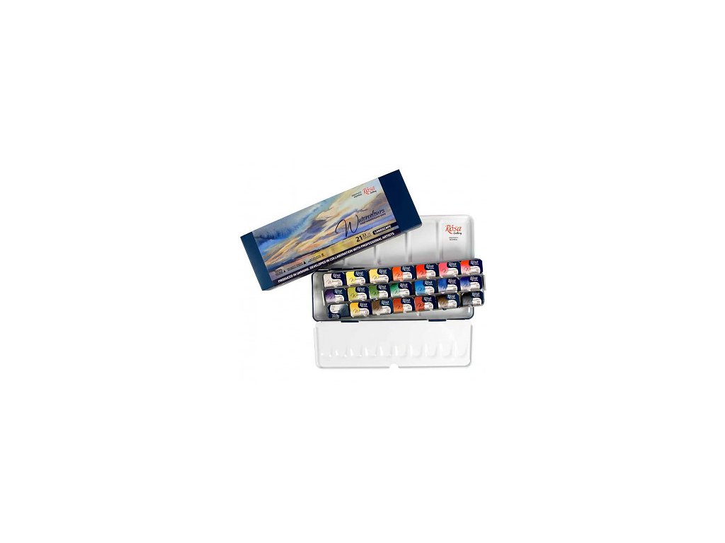 Umělecké akvarelové barvy Gallery od ukrajinského výrobce Rosa představují kvalitní barvu s vysokým obsahem pigmentu a ověřenou recepturou. Vyrábějí se na bázi přírodní arabské gumy, která je základem všech akvarelových barev. Vyvinutí těchto barev probíhalo (a do určité míry stále probíhá) ve spolupráci s výraznými umělci, díky čemuž se barvy řadí světově mezi špičku. Na svou výbornou kvalitu jsou navíc za velice dobrou cenu. Praktická kovová kazeta.