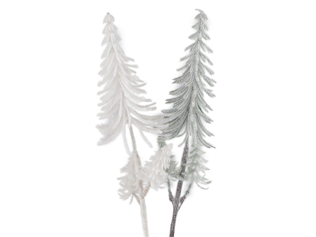 Dekorační stromeček na floristickém drátku je pokrytý umělým sněhem. Využijete ho jako ozdobu truhlíků, květináčů, vánočních kytic a různých zimních aranžmá.