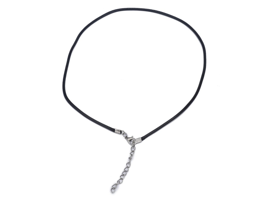Módní šňůrka k zavěšení přívěsků. Délka cca 40,5 cm + adjustační řetízek a zapínání. Šňůra pr. 1 mm.