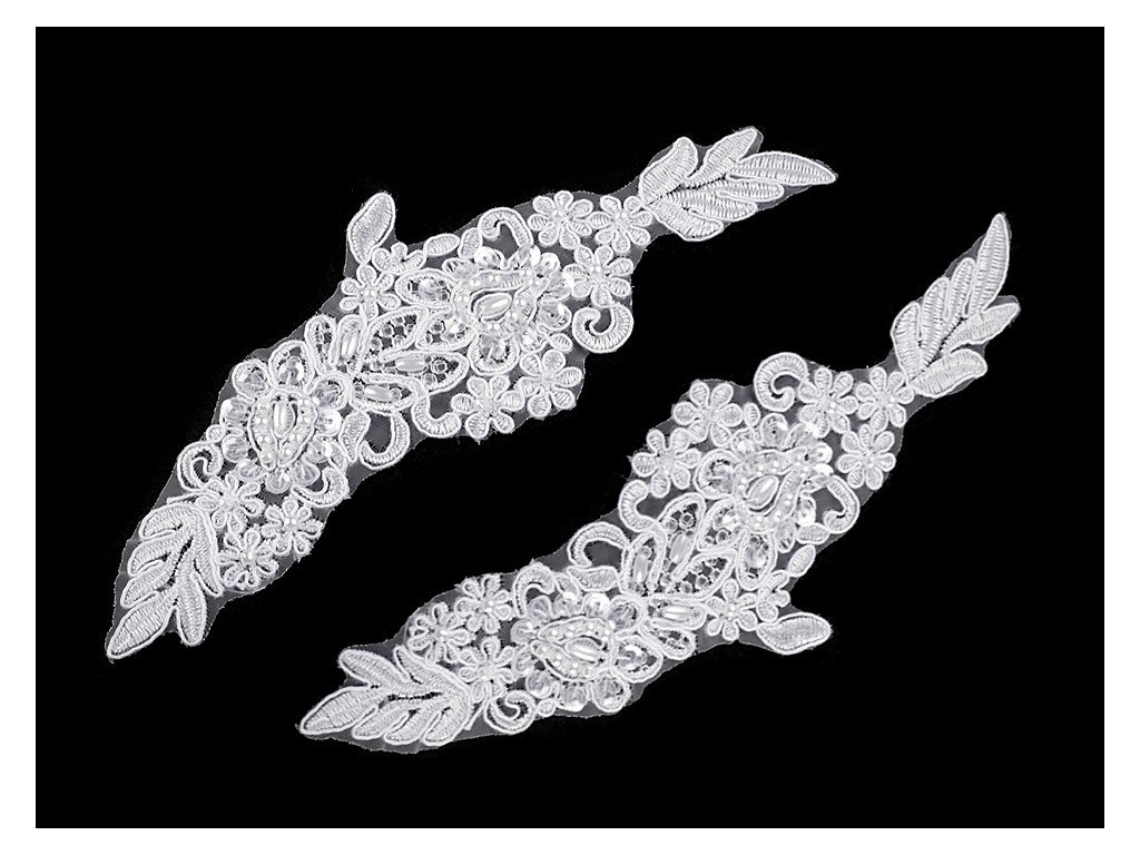 Monofilová aplikace / vsadka 6,8x19,5 cm s flitry a perlami