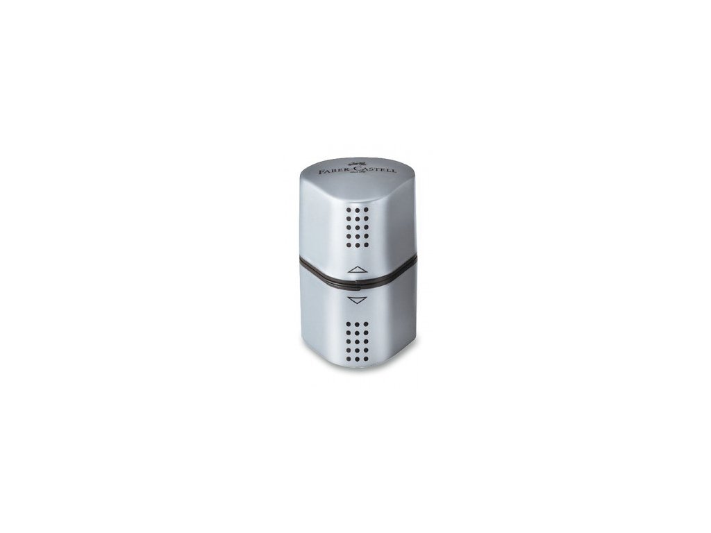 Ergonomické uzavíratelné ořezávátko značky Faber-Castell vhodné pro tužky a pastelky standardní i jumbo velikosti. Na každé straně je jedna část ořezávátka se samostatnou nádobkou.