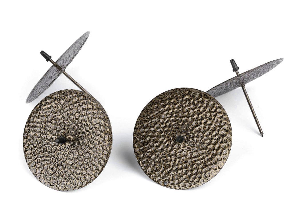 Kovové bodce jsou vhodné k výrobě adventních věnců. Delší hrot použijete k upevnění na základnu dekorace, svíčku pak napíchnete na kratší hrot v misce.