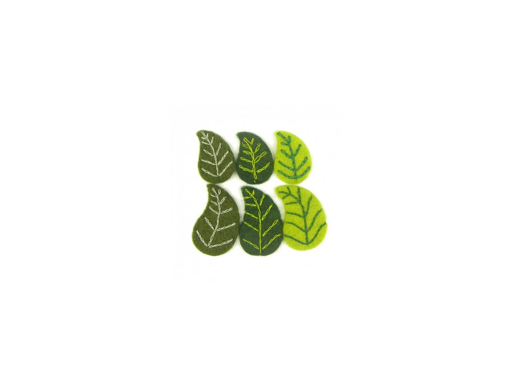 Ručně plstěné lístky z přírodní vlny, dekorované vyšíváním. Vhodné pro výrobu dekorací, broží, zdobení oděvů, tvoření s dětmi apod. Vyrobeno v Nepálu.