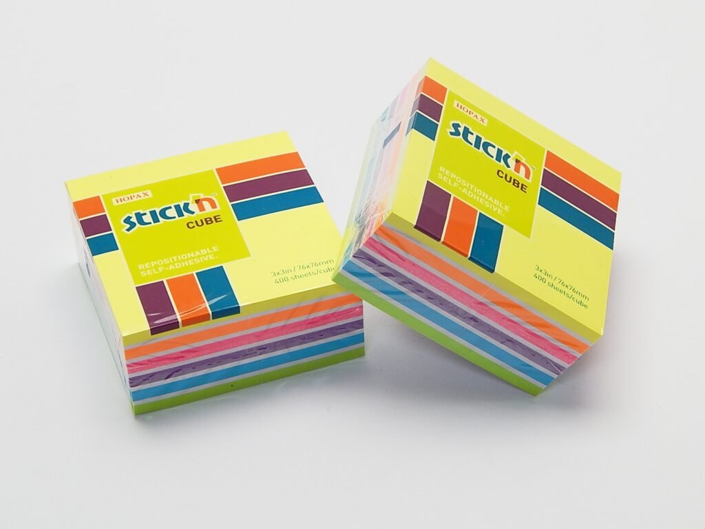 Bloček samolepicí v kostce Stick'n by Hopax, 76x76mm, neon mix, 400 lístků