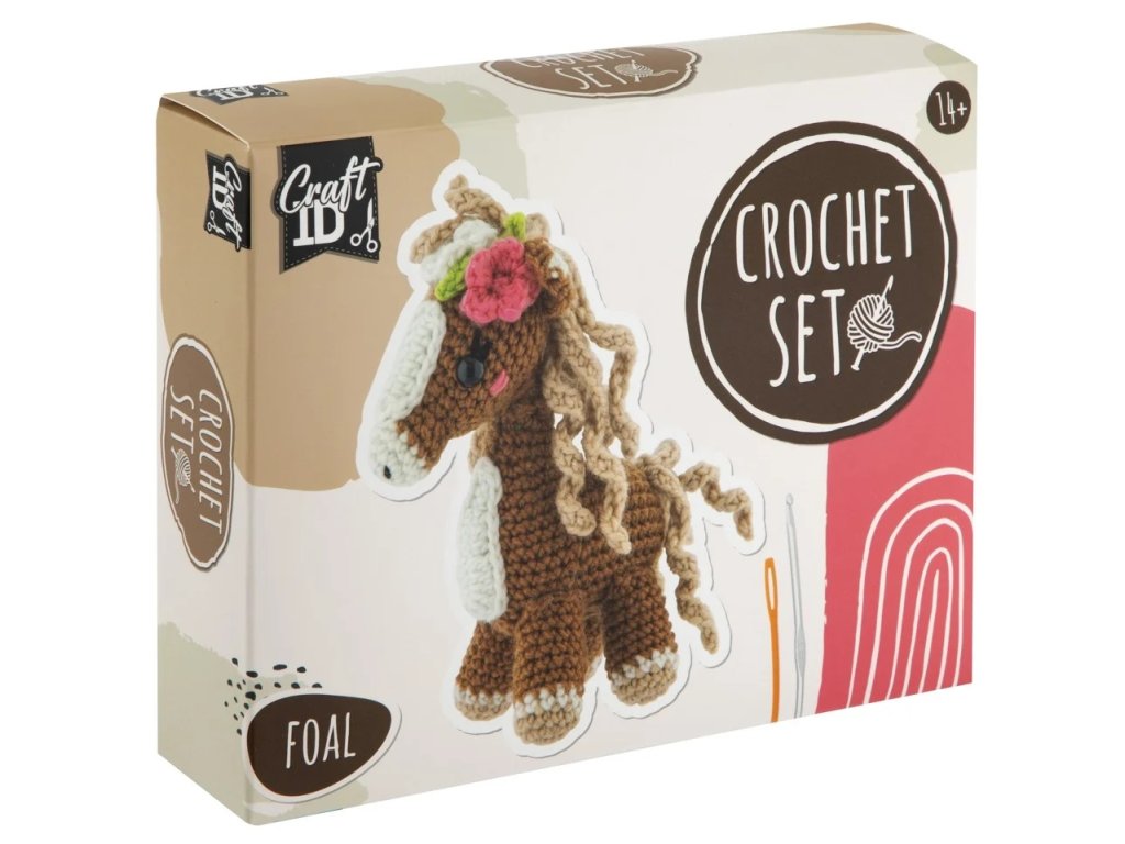 - hnědou, světle hnědou, růžovou, bílou a černou přízi, háček, plastovou jehlu, výplň a knoflíky na oči a nos.