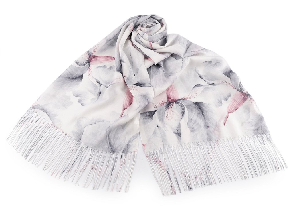 Letní šátek / šála s třásněmi velké květy 70x180 cm