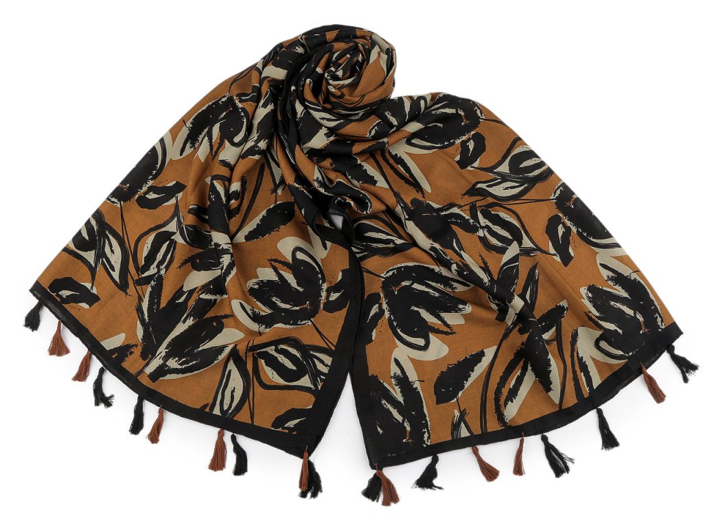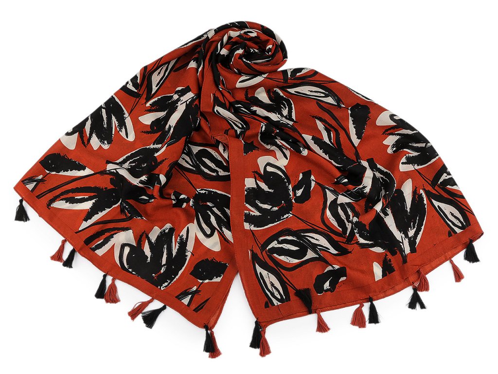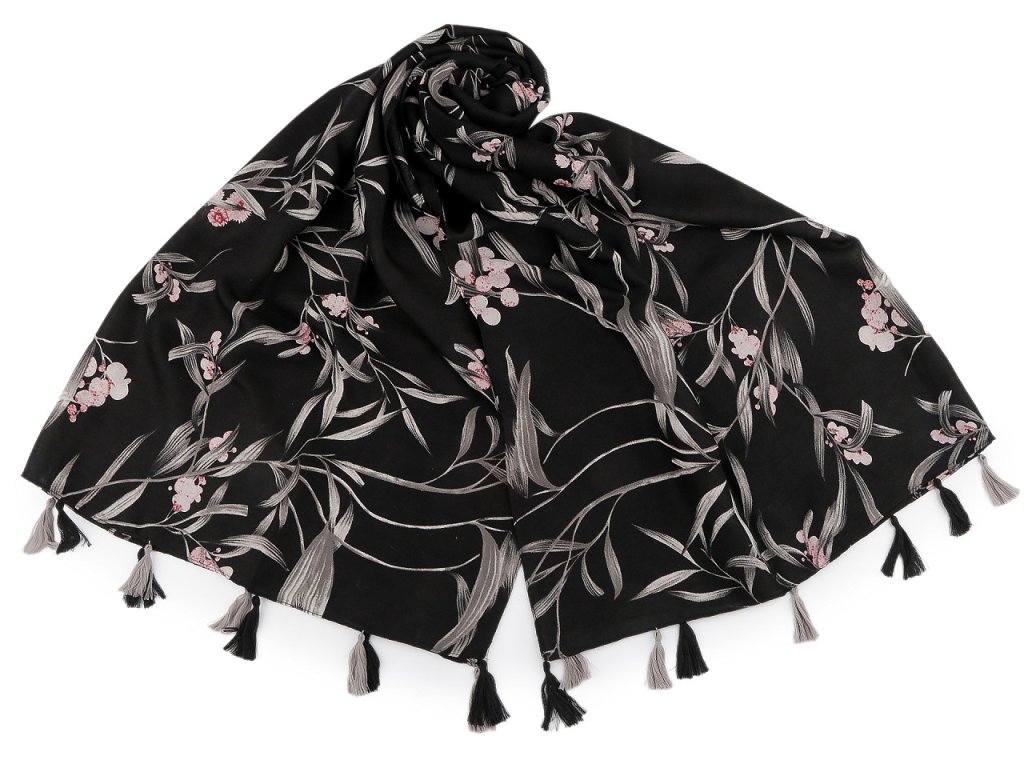 Šátek / šála / pléd s květy a střapci 80x180 cm