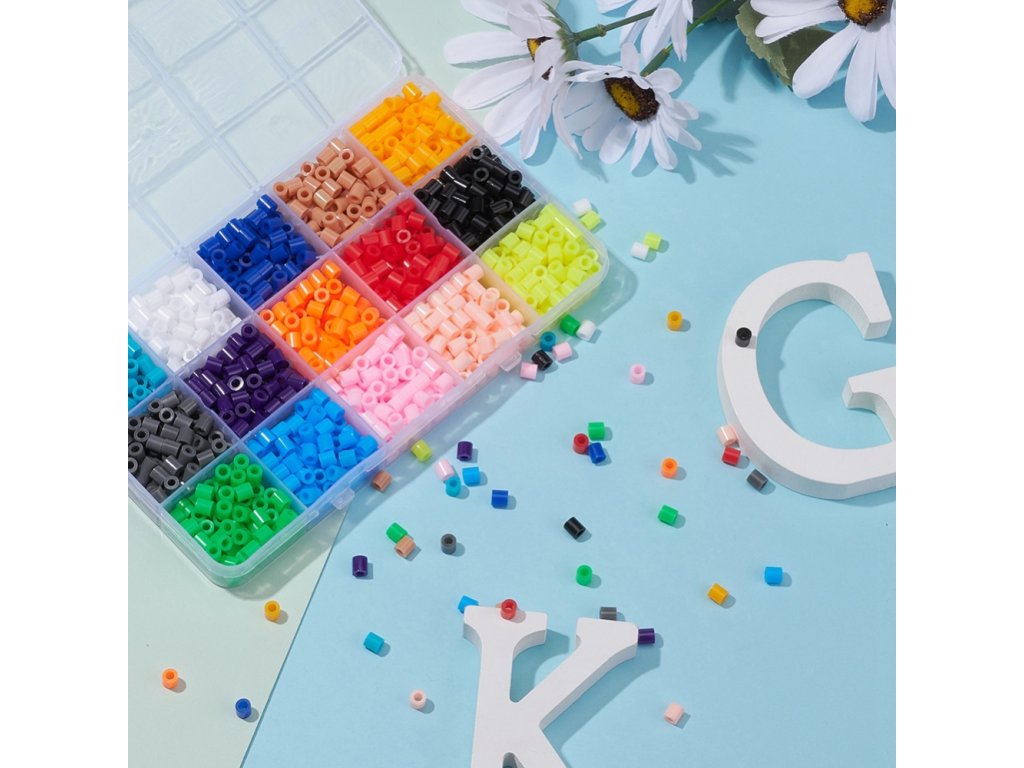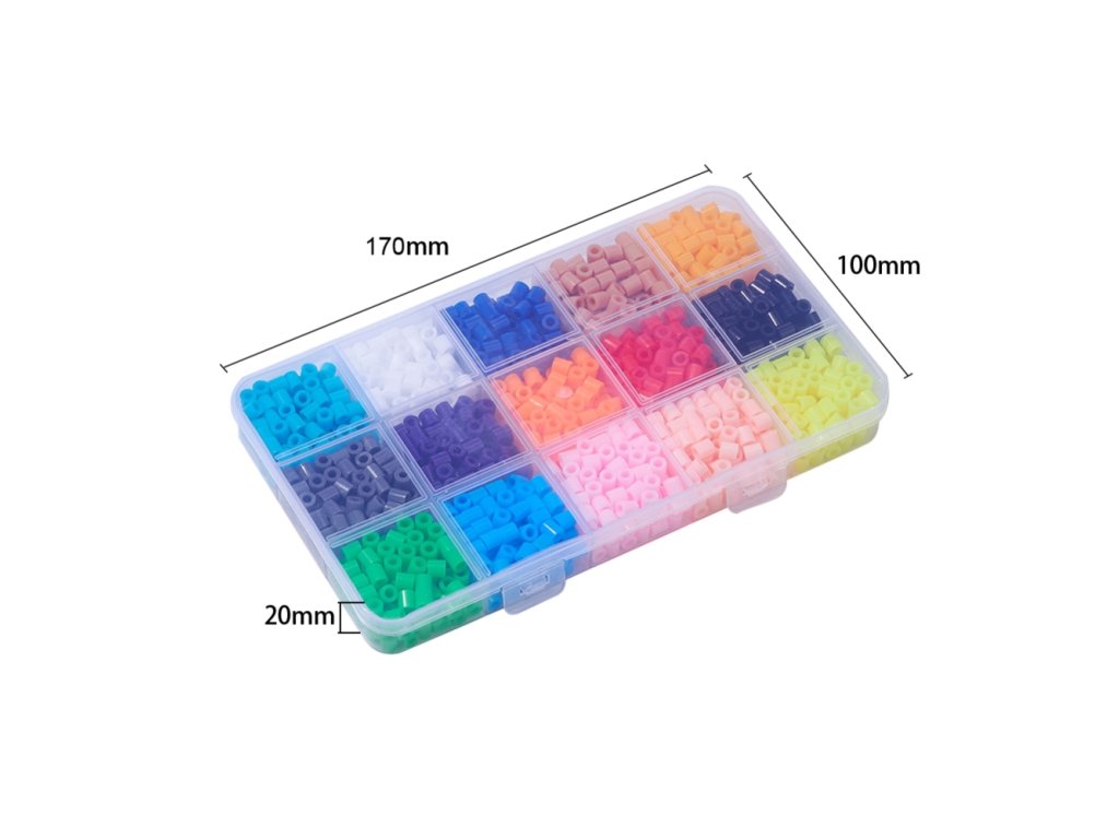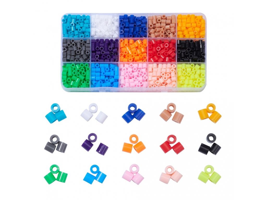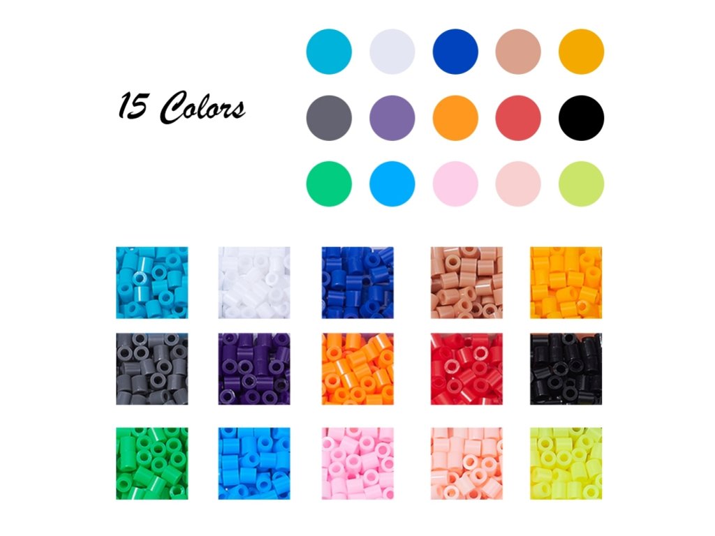 Balení obsahuje 1500 ks zažehlovacích korálků různých barev o průměru 3 mm - od každé barvy 100 ks.