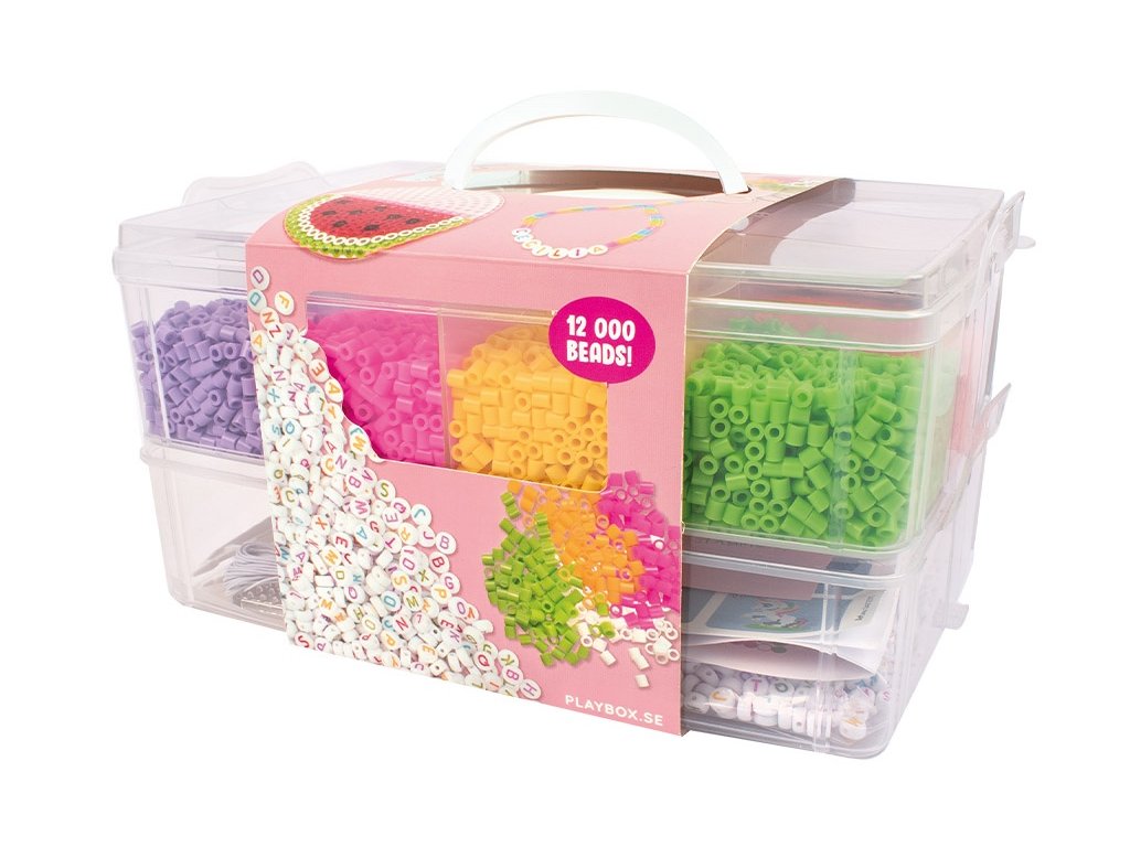 Součástí jsou také podložky na zažehlování, na kterých děti i dospělí mohou podle vlastní fantazie nebo šablon vyskládat libovolné motivy. Kromě toho sada obsahuje písmenkové korálky pro tvorbu jmen, náramků a personalizovaných doplňků.