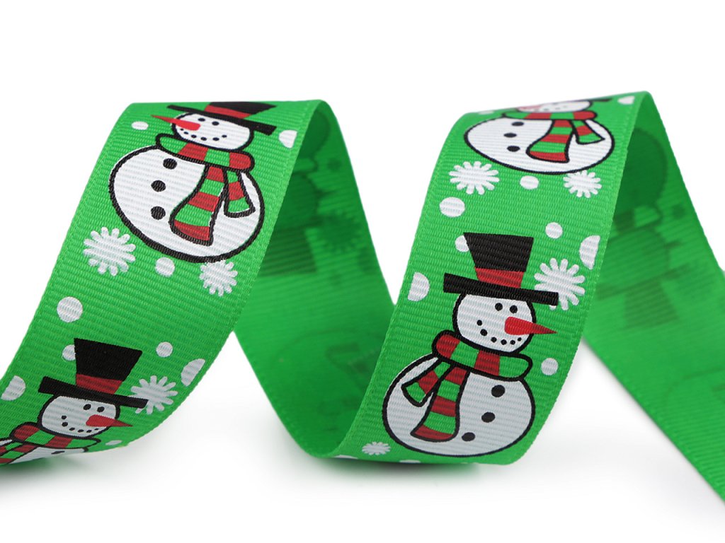 Vánoční rypsová stuha sněhulák šíře 25 mm