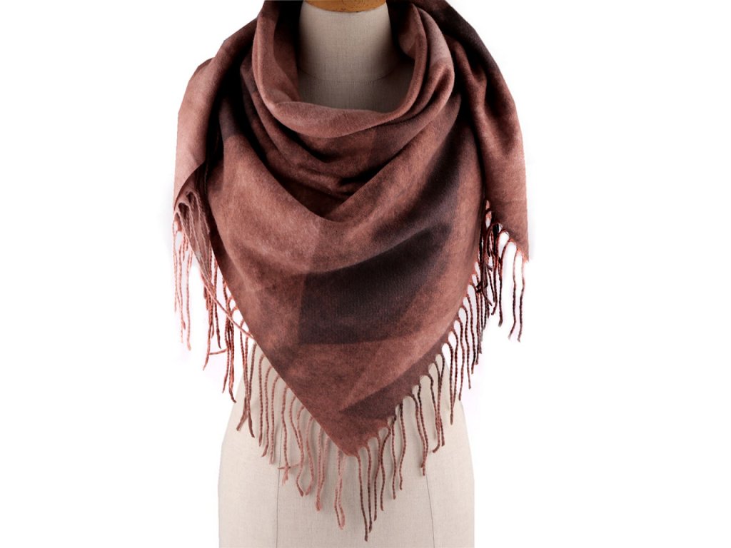 Velký teplý šátek / pléd s třásněmi, ombré 100x105 cm