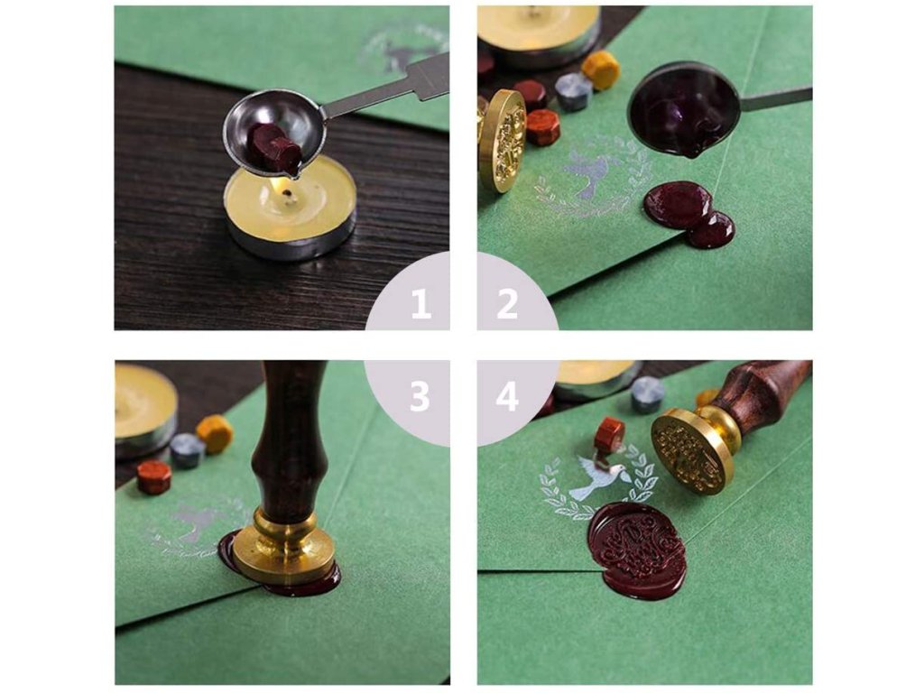 Kovové pečetidlo s dřevěnou ručkou pro práci s pečetními vosky.
