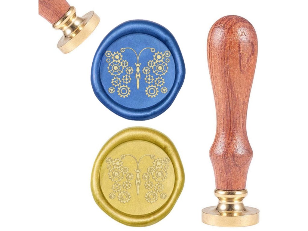Kovové pečetidlo s dřevěnou ručkou pro práci s pečetními vosky.