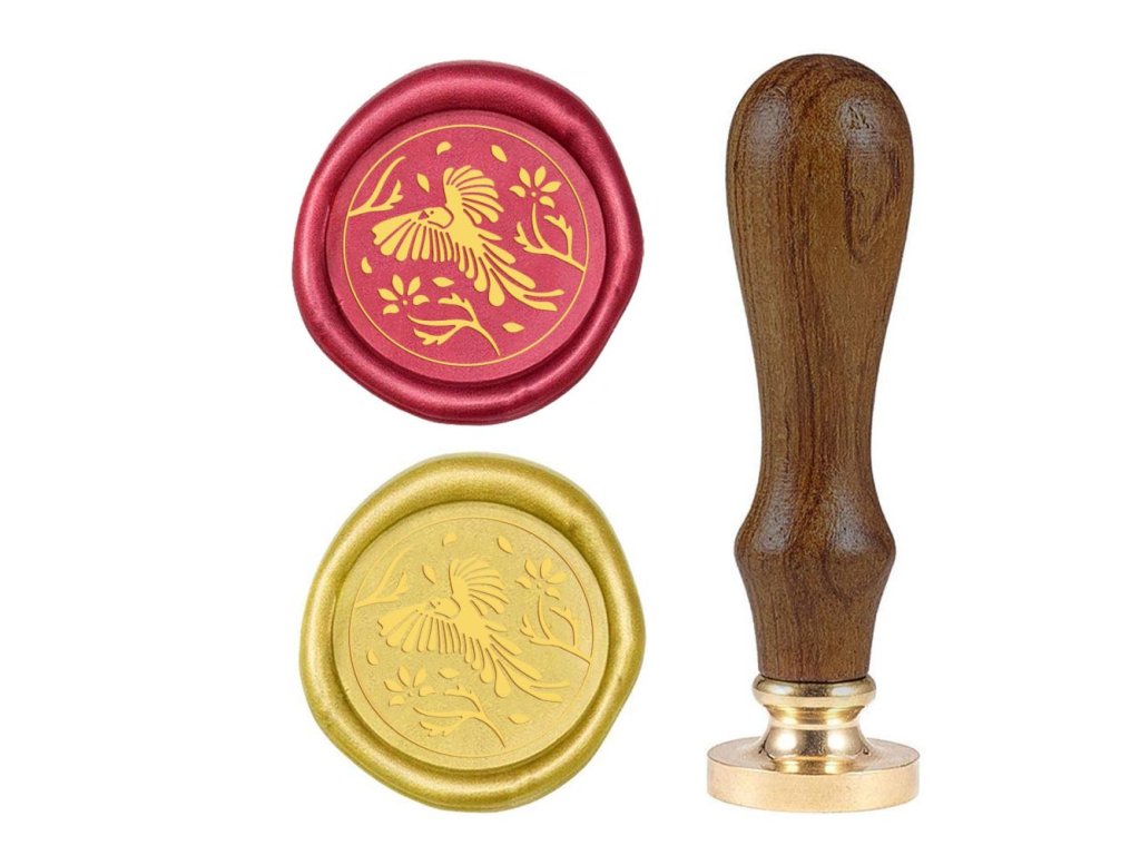 Kovové pečetidlo s dřevěnou ručkou pro práci s pečetními vosky.