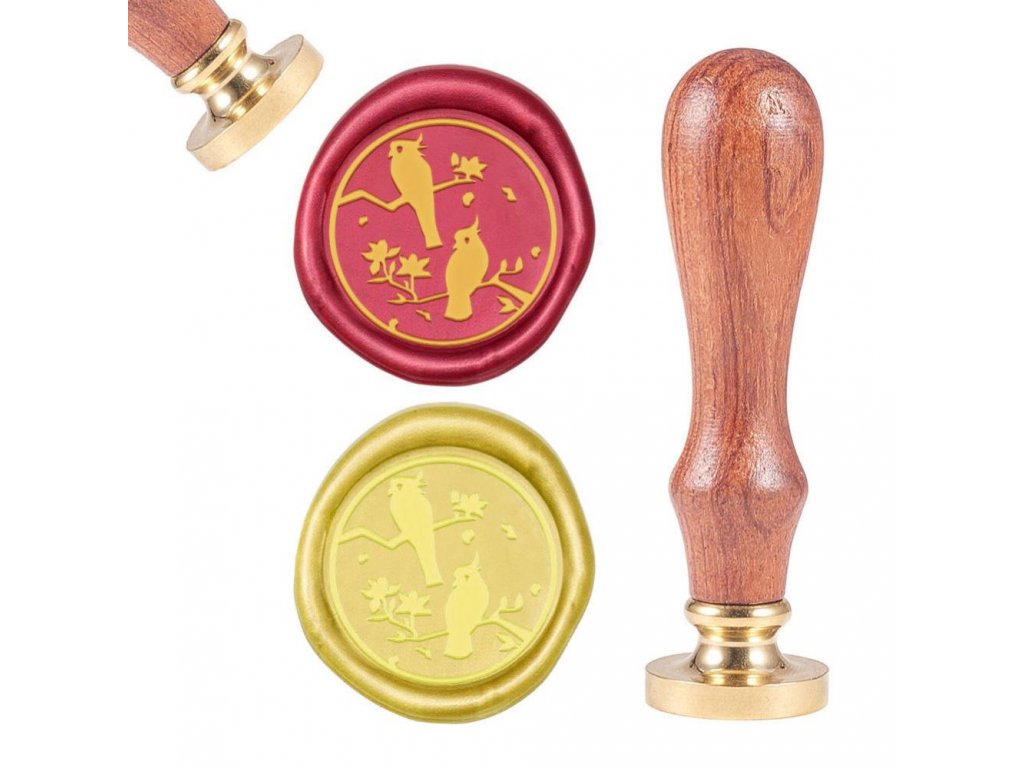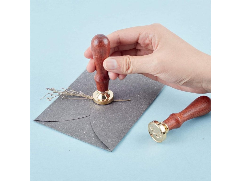 Kovové pečetidlo s dřevěnou ručkou pro práci s pečetními vosky.